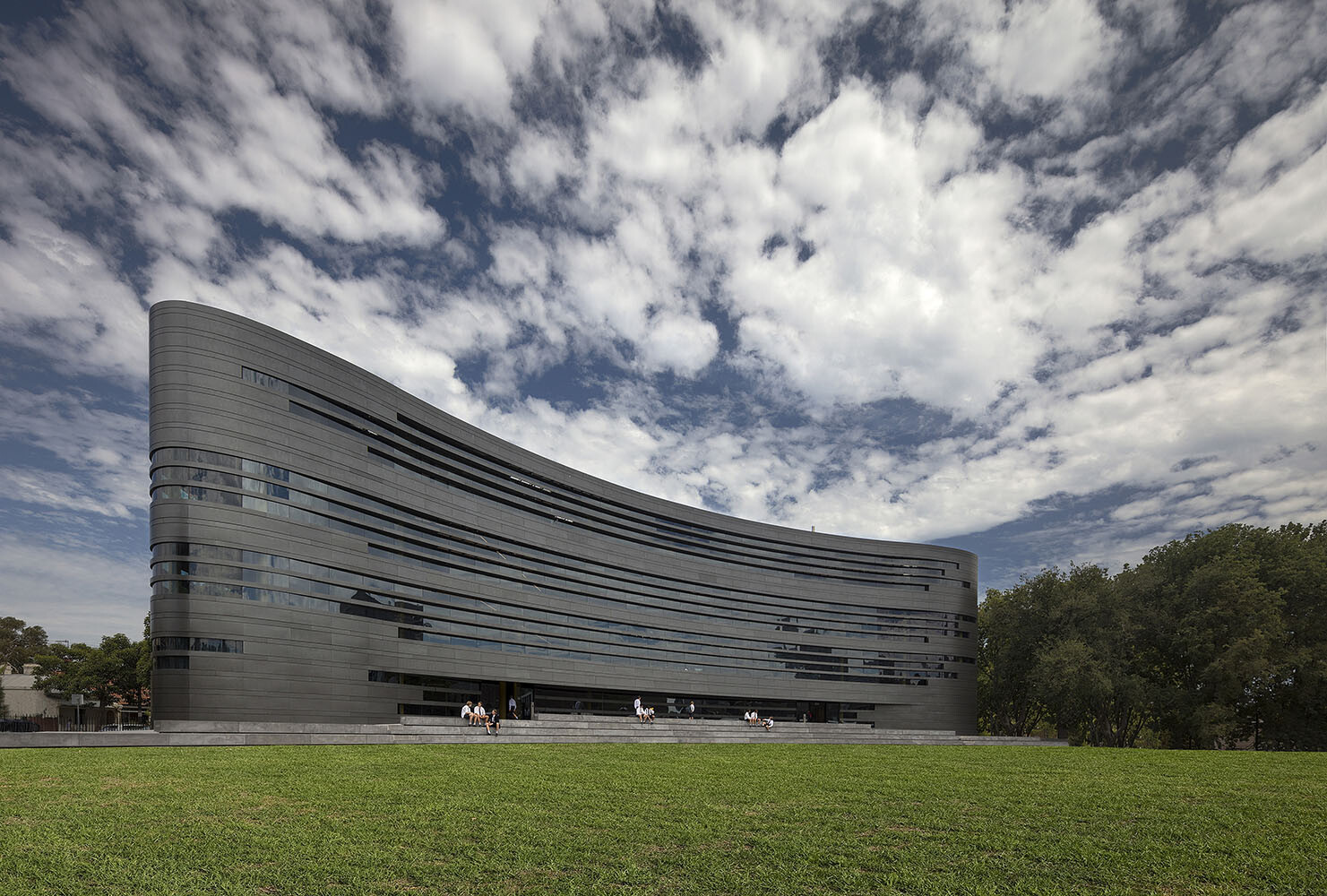 “We designed the building as a clear, simple sculptural form with a solid base acknowledging its campus setting. Above the base, sculptural sunscreens are embedded with an abstracted indigenous narrative and also allude to the scientific investigation within.” Denton Corker Marshall’s Director Adrian FitzGerald said.
