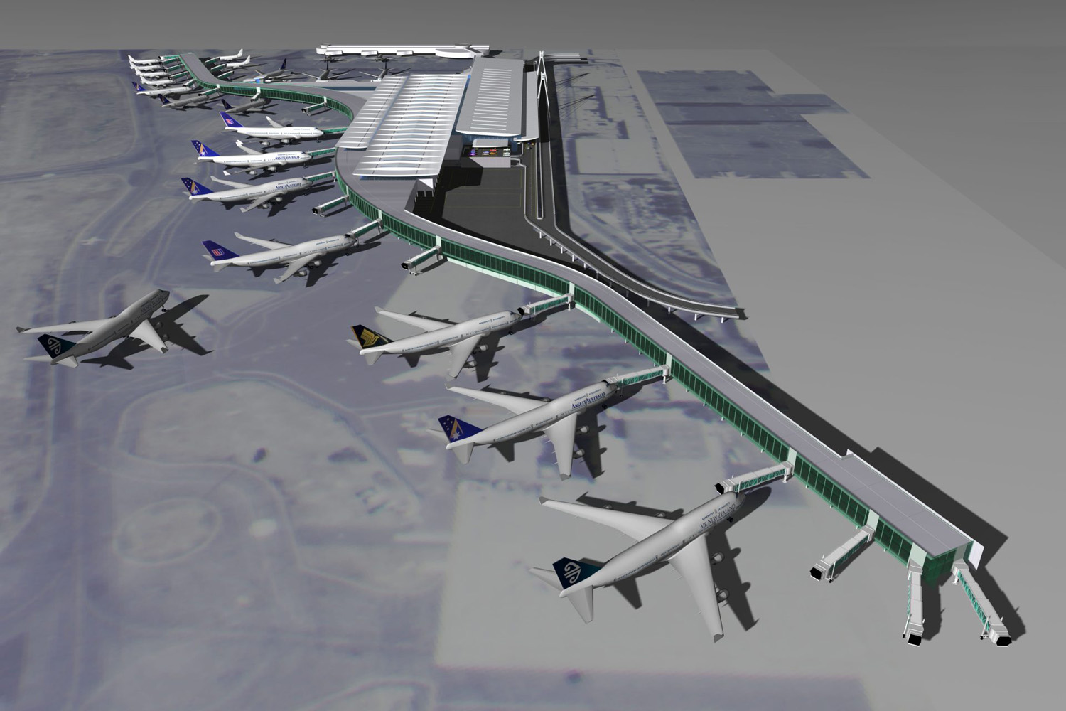 Architectural design study for an integrated international and domestic airline terminal development at Sydney Airport.