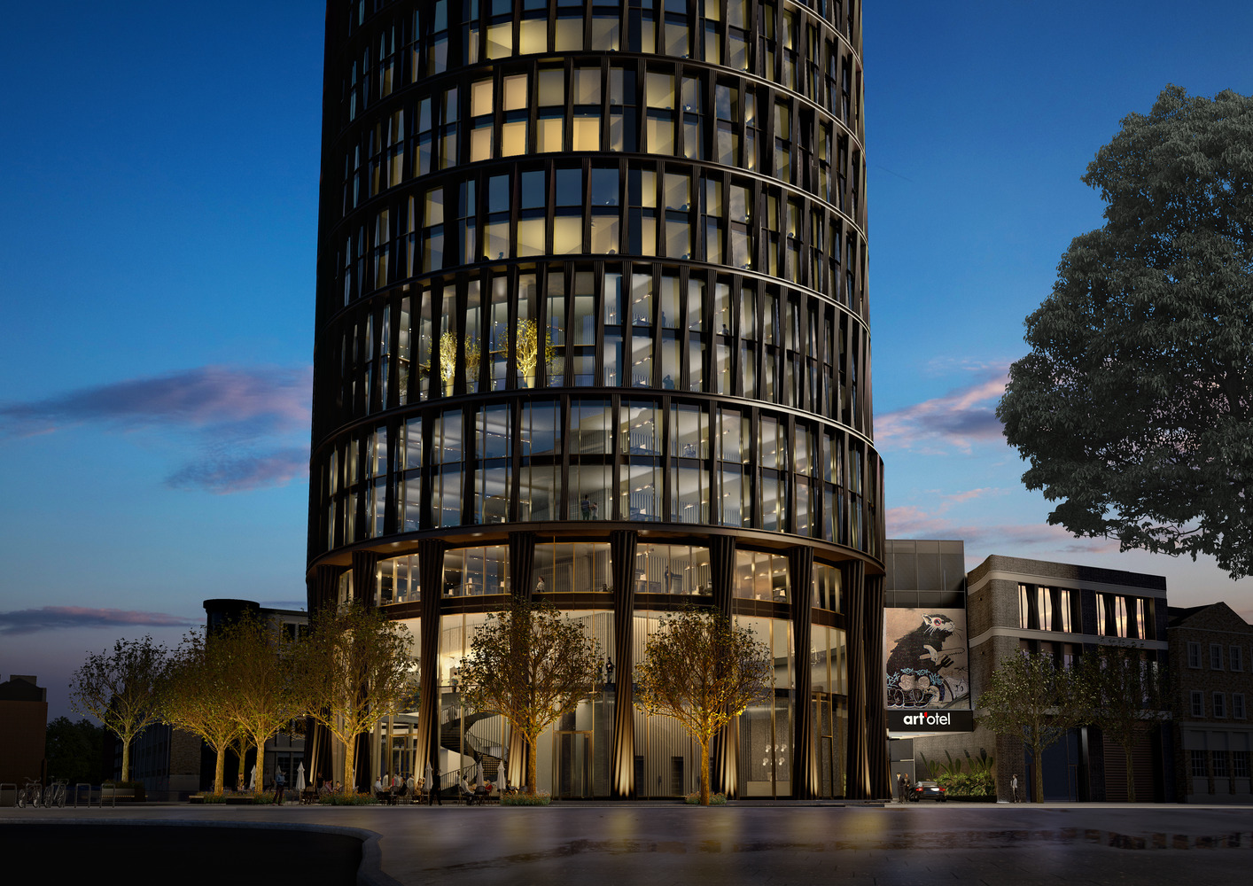The Art’otel Hoxton is a 27 floor, 5 Star hotel at the heart of trendy Shoreditch. The building is the first in the UK under the luxury Park Plaza Hotel Group brand. The building includes 340 hotel rooms, five floors of commercial office space, restaurants, a VIP cinema and a gallery on the lower floors which will host a rotating calendar of exhibitions, events, talks and shows.