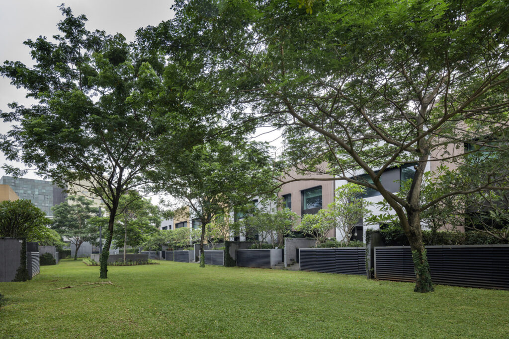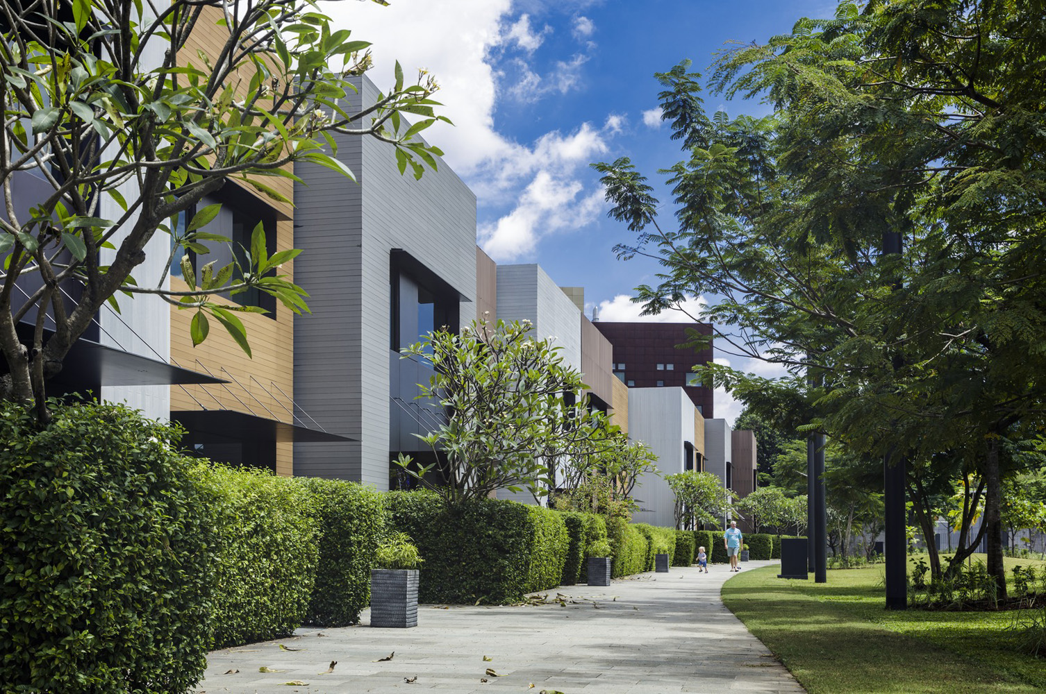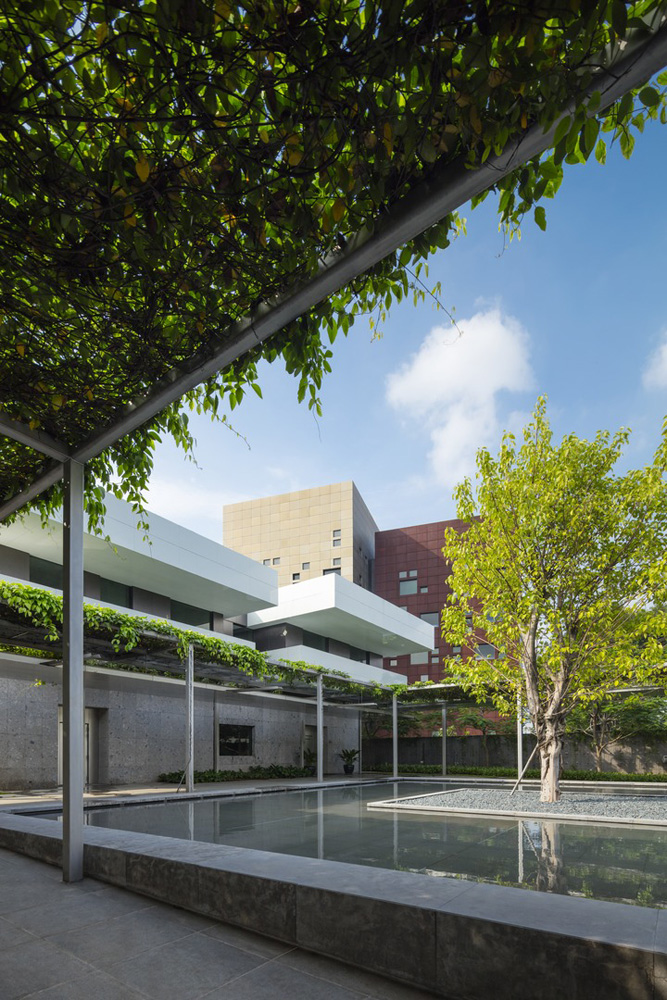 The Executive Residence is a two-storey building composed of a series of interlocking blocks which expressively articulate the façade with patterns of light and shade.