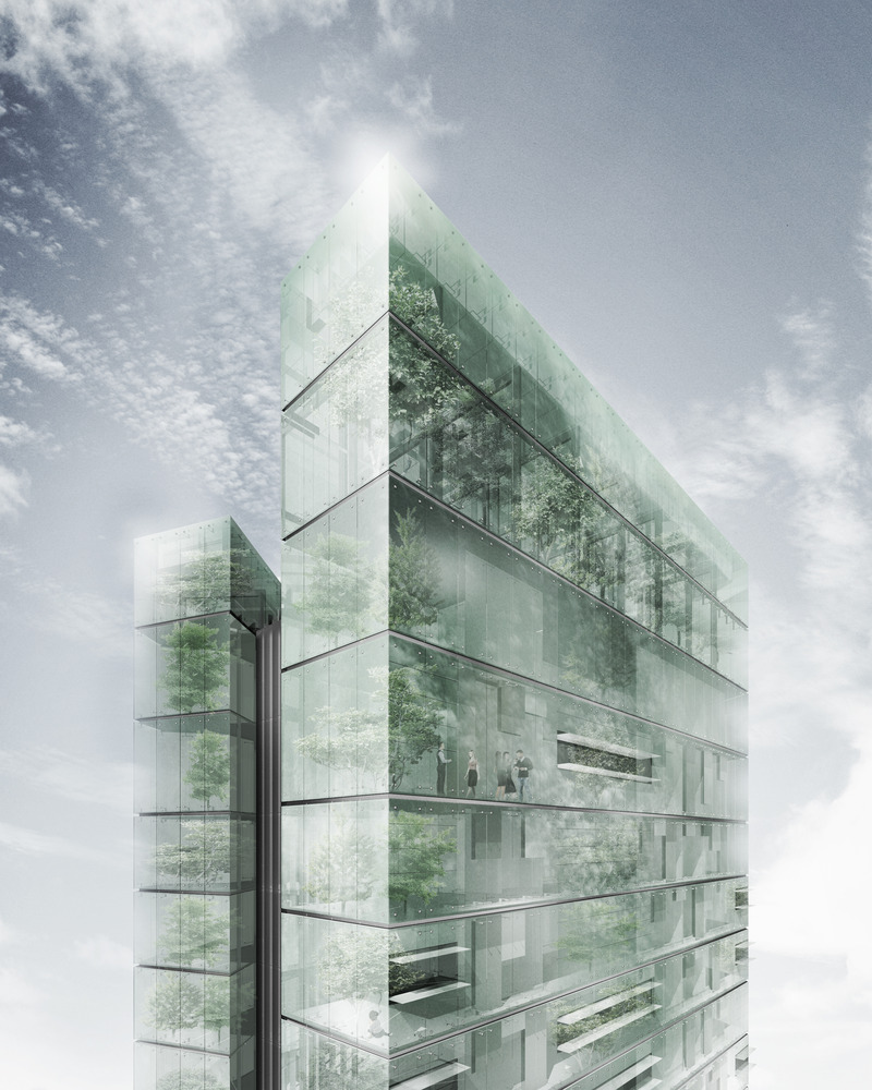 It expresses the volume as three ‘impossibly’ slender vertical glass billets, concealing the bulk within.  The towers are expressed as clear, simple but powerful forms which highlight a singular idea, ensuring they stand apart as iconic and memorable structures within the complexity of forms of adjacent buildings and within the city as a whole.
