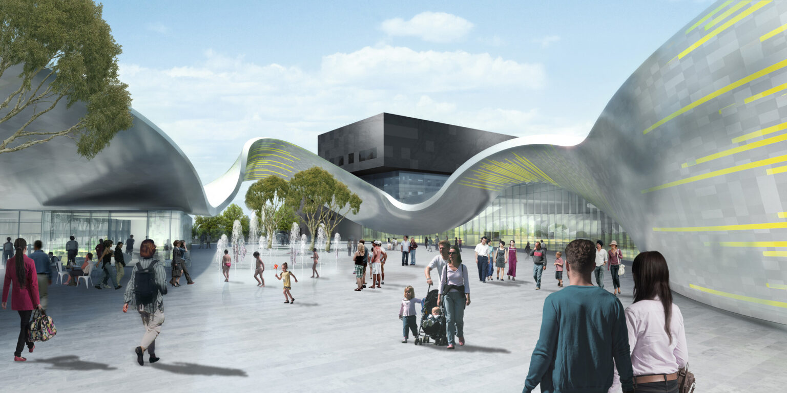 The ribbon form allows a modulation from building to façade, canopy, veranda and sculpture. It defines the entire precinct and all the functions contained within it. The ribbon distinguishes the precinct as a new and unique destination with a recognisable and striking image. The building itself becomes a cultural event, a permanent performance, an attraction.
