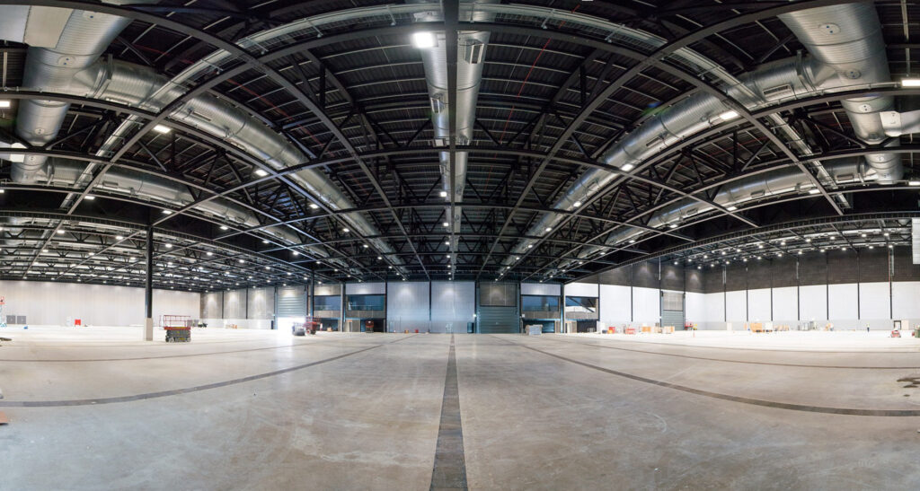 The venue has 8,100m2 of exhibition space which is sub-divisible into three inter-linked column-free halls, each 2,700m2 in area, which can be used separately or in combination. One hall has an increased height of 18 metres to accommodate rock and musical stage shows.