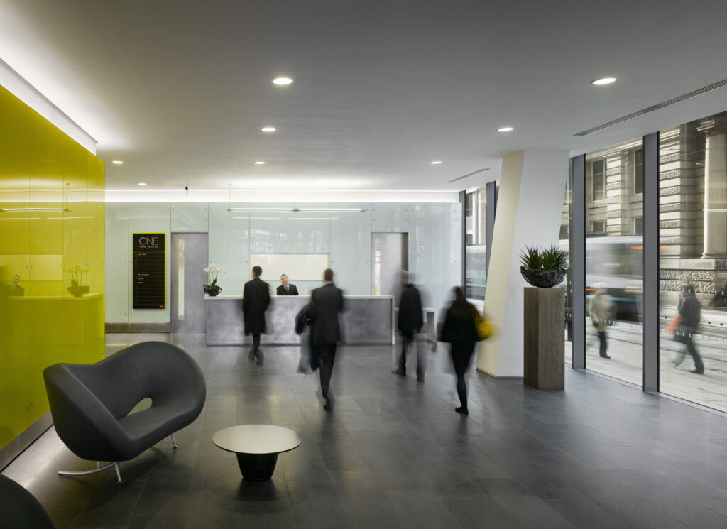The design creates a dynamic impact at cityscape level. Its architectural form consists of two-storey glass and metal elements which give the illusion of sliding in and out of the main building envelope. These ‘sliding’ boxes build up the massing of the building and give it a physical impression of turning the corner, thus creating a greater perceived link between the streets.