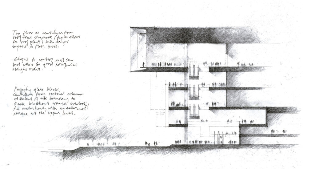 The review involved rationalising a circulation and address, along with detail massing studies and external facade expression. The latter included introducing an event deck overlooking the Harbour.