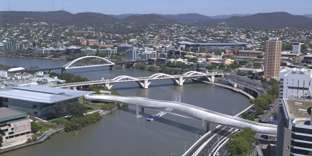 Competition design for a pedestrian/cycle bridge spanning the Brisbane River between the Brisbane CBD and the Arts Precinct.