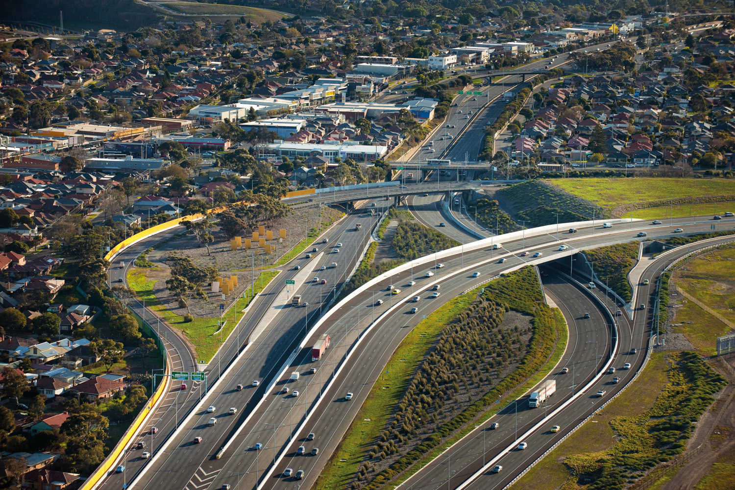 Denton Corker Marshall was responsible for all urban design and freeway architecture input including elevated structures, barriers, retaining walls, noise walls and ancillary elements.