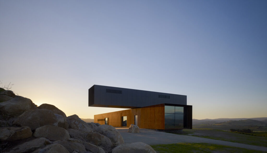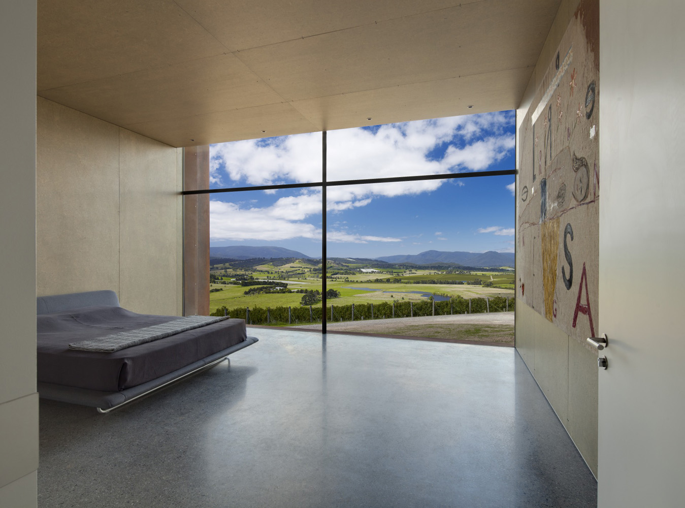 Set on top of a small hill, the house overlooks a 32 hectare vineyard on a 60 hectare property with views across the entire Yarra Valley.